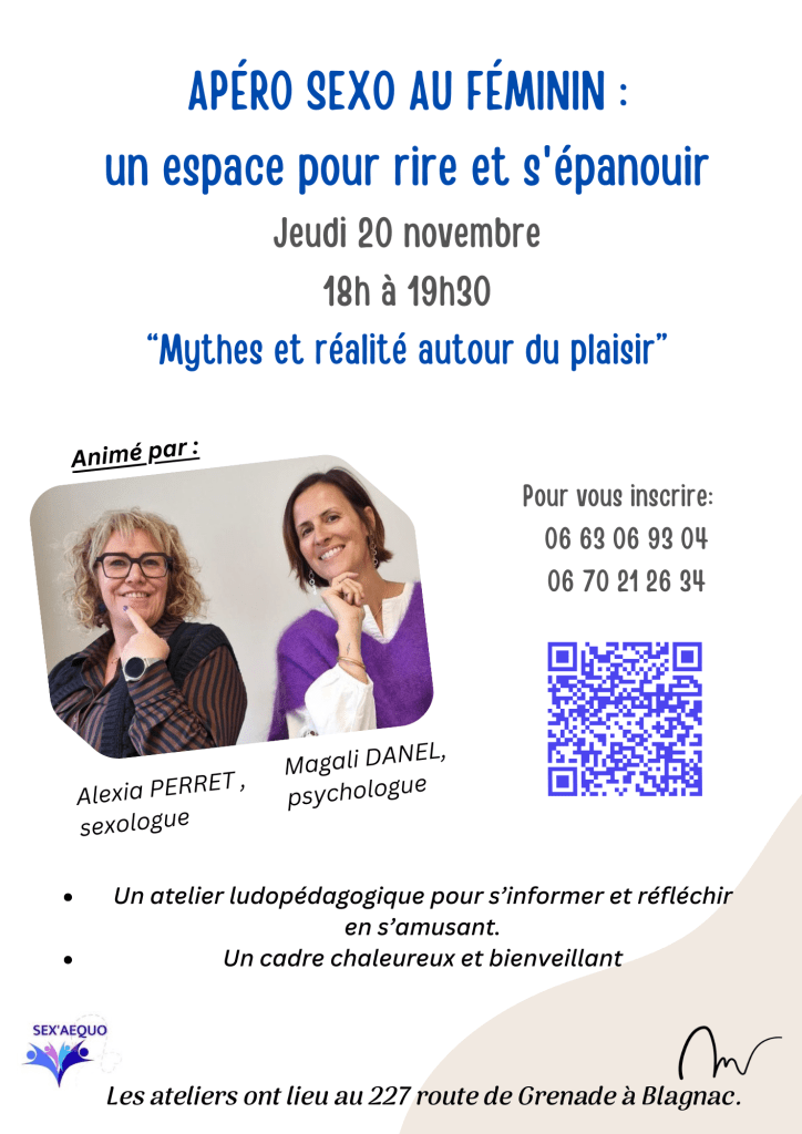 Animé par Magali Danel, psychologue et Alexia Perret, sexologue, cet atelier est l’occasion de déconstruire ensemble ces représentations, de partager sans tabou et de repartir avec des pistes concrètes pour enrichir sa vie intime.